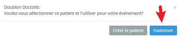 Voulez-vous sélectionner ce patient et l'utiliser pour votre événement?