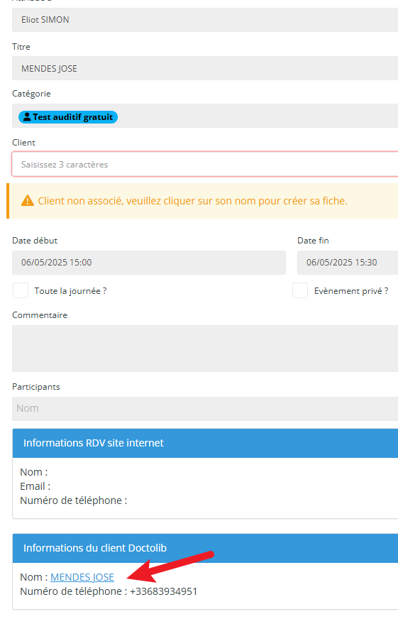Les patients ne se créer pas automatiquement, il faut toujours passer par le menu de l'agenda et de sélectionner le patient en dessous.