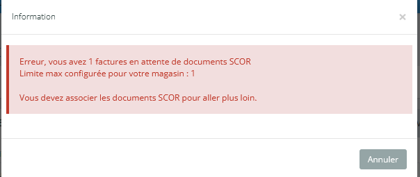 Nombre maximum de FSE en attente de documents SCOR autorisée avant de bloquer la télétransmission :